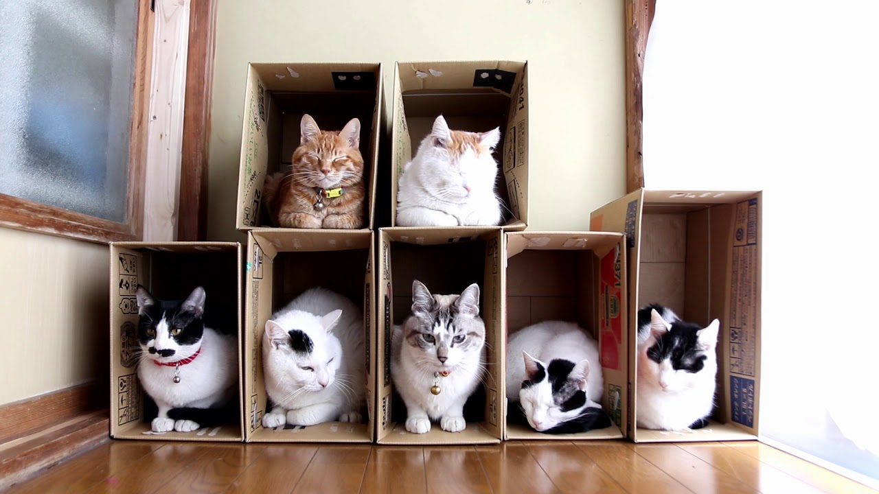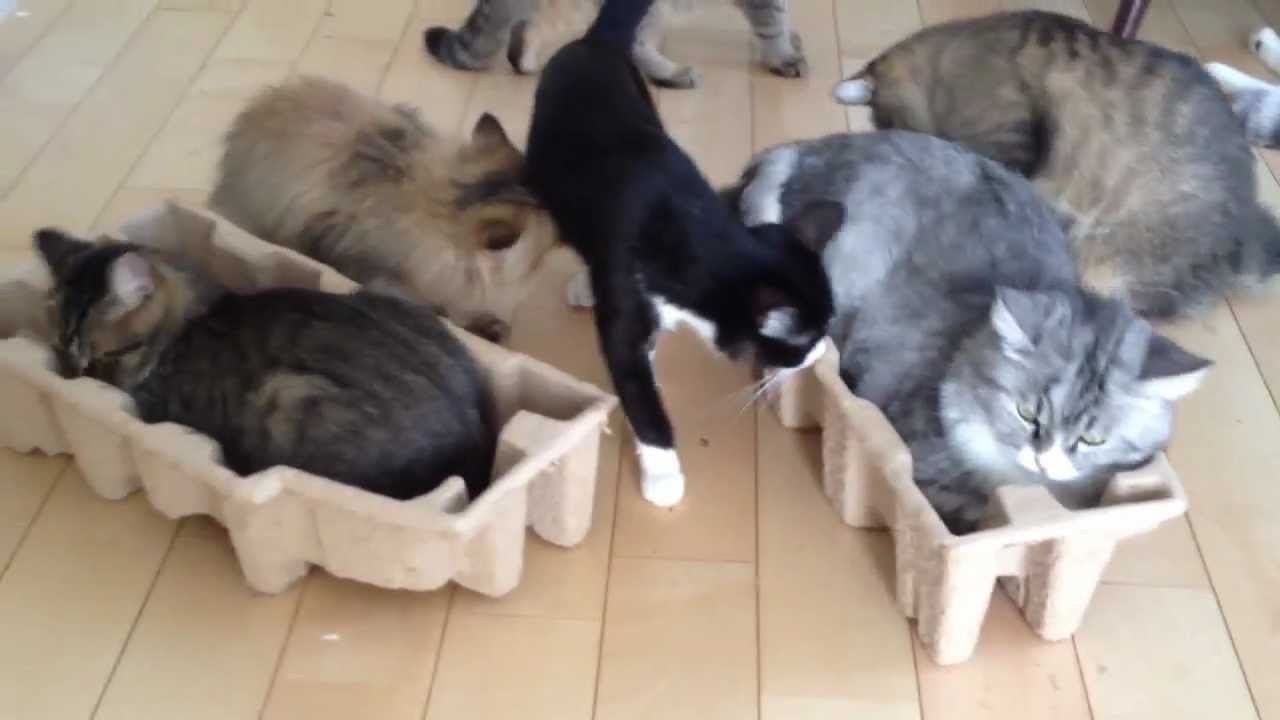 かご猫【箱の中が好きだニャ!】空き箱に猫たちが集まる!