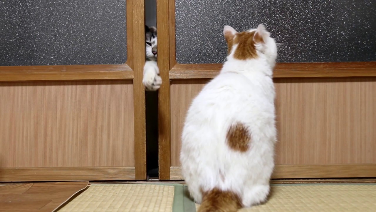 かご猫【開くまで待つニャ!】他の猫に戸を開けてもらうネコ!