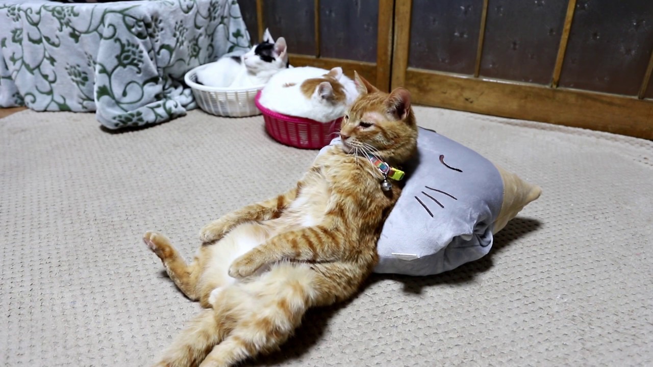 かご猫【気持ちいいニャ!】ネコ枕で熟睡する猫!