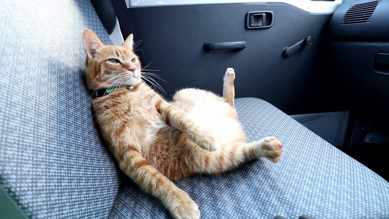 かご猫【楽だニャ~!】軽トラックの助手席に乗る猫!
