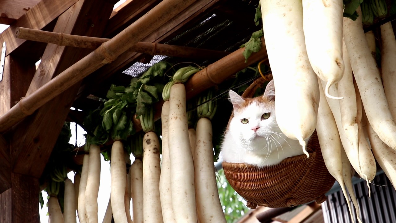 かご猫【最高の田舎暮らしだニャ!】ひなたぼっこをする猫!