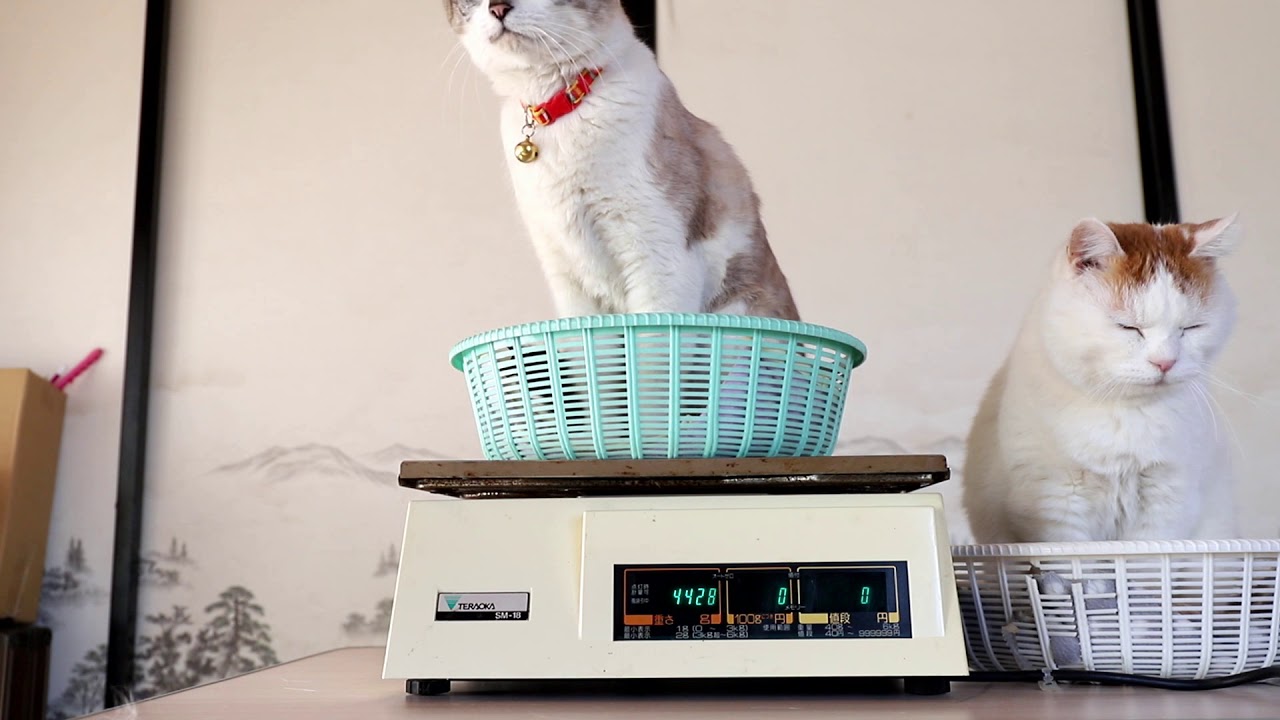 かご猫【ネコの身体検査だニャ!】体重測定をする猫!