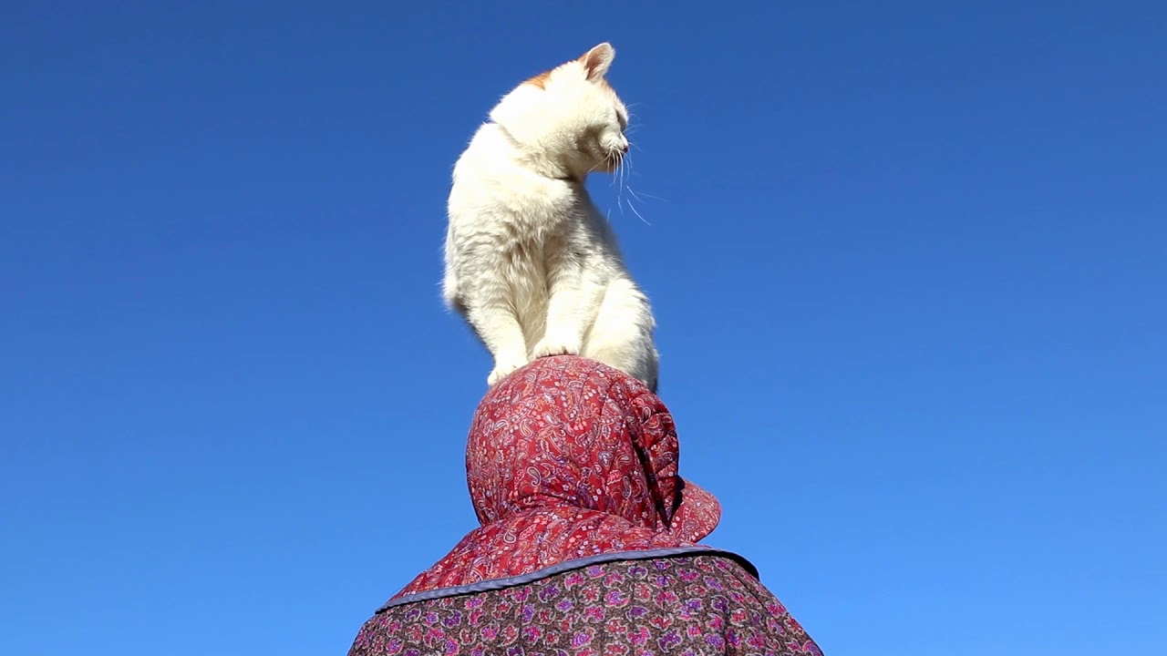 かご猫【見晴らしが良いニャ!】頭の上に乗った猫!