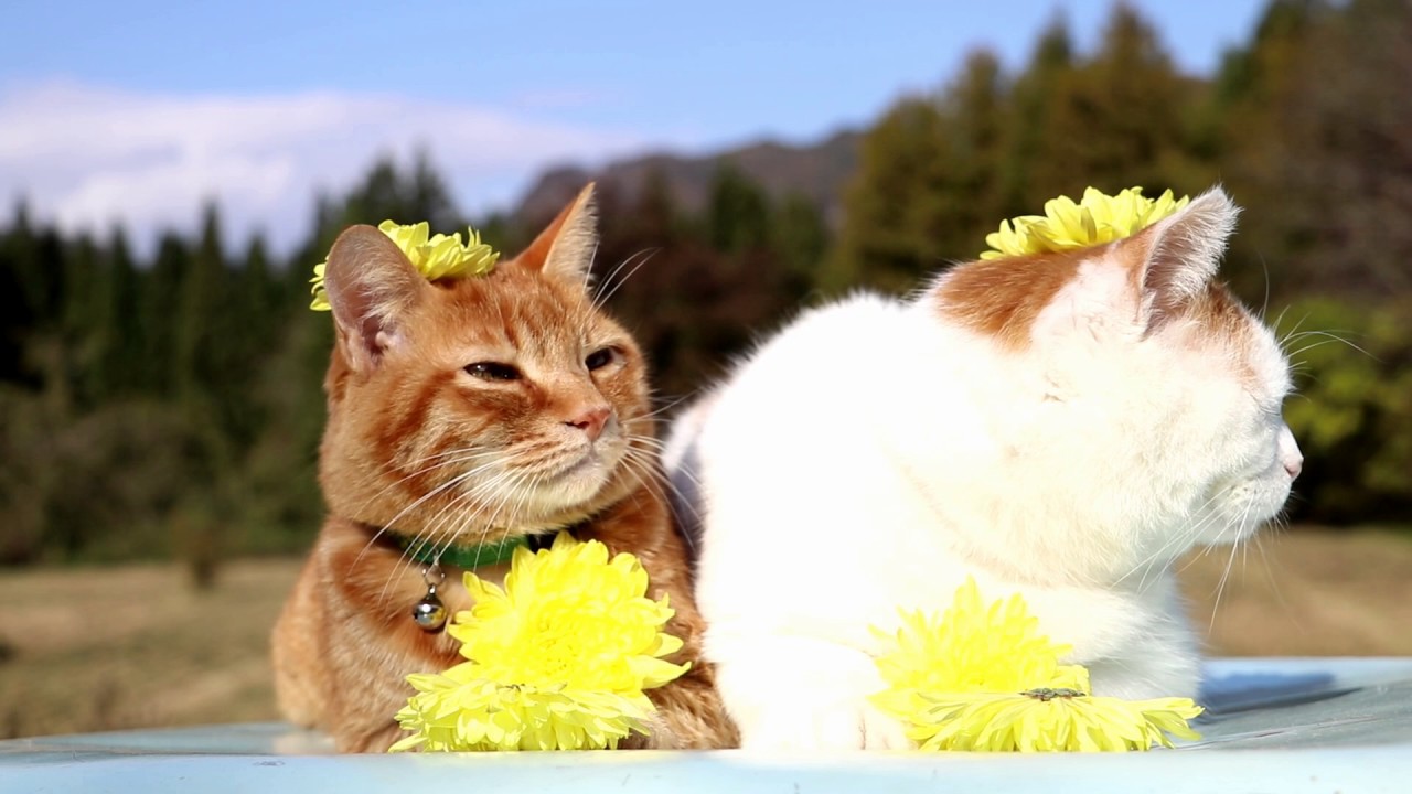 かご猫【似合うかニャ!】食用菊で飾った猫!