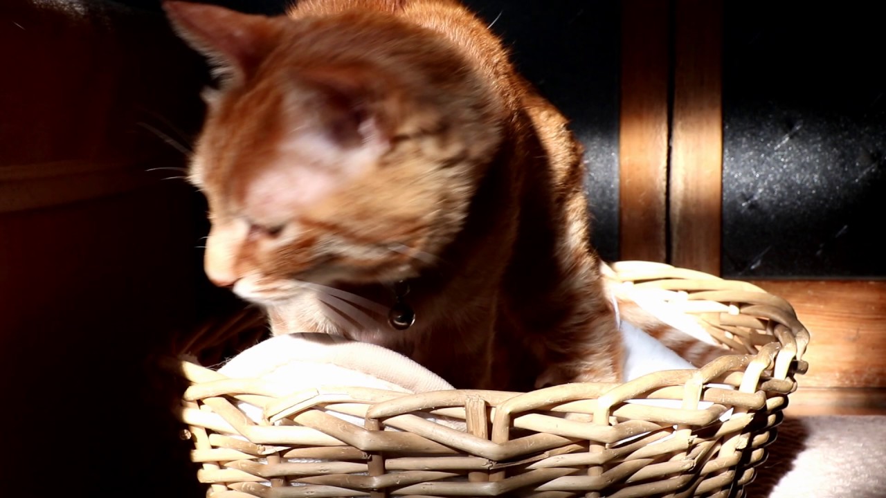 • かご猫~ネッククッション・おもちゃ・段ボール箱・シェア・ぴったりのかご・布団・お昼寝・食用菊・サングラス・鍋・穴掘り・頭の上~