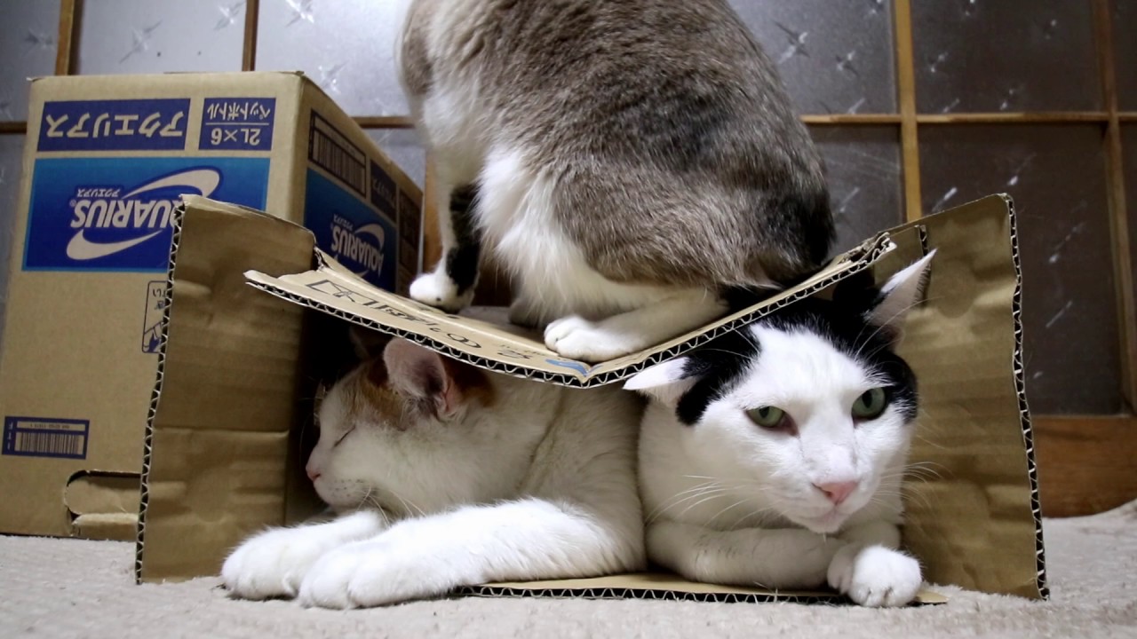 かご猫【ジャストサイズだニャ!】段ボール箱の中でギュッとなった猫!