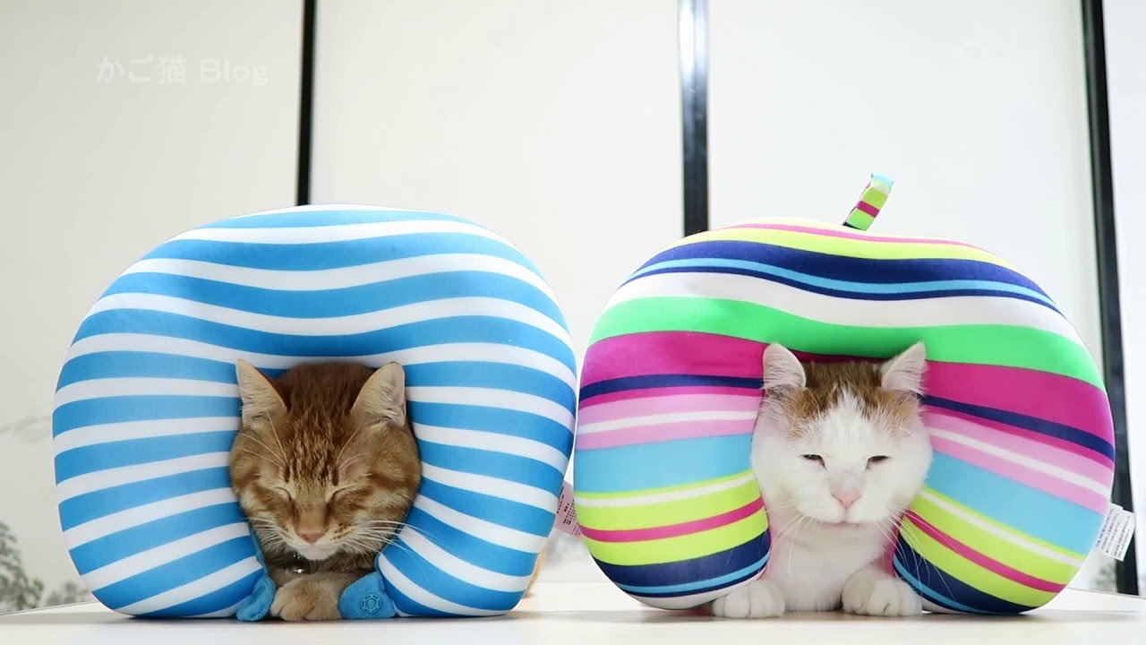 かご猫【ツタンカーメンだニャ!】ネッククッションを楽しむ猫!