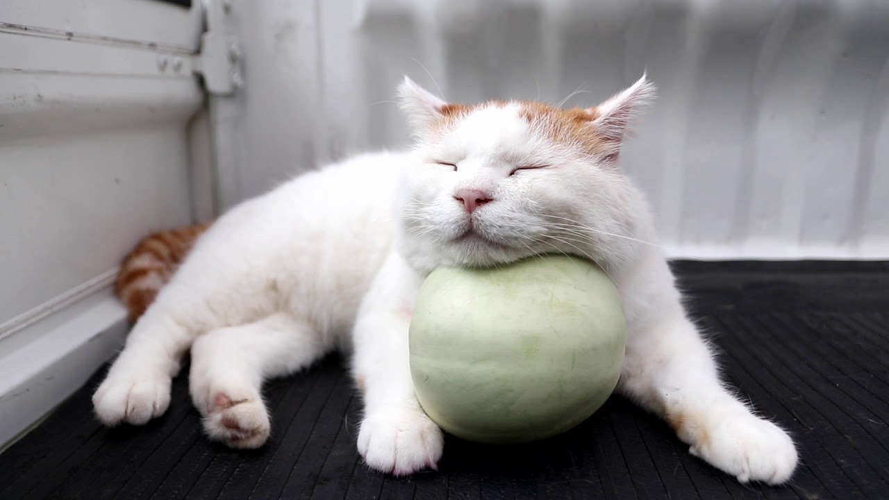 かご猫【顔を乗せるニャ!】プリンスメロンを枕にして寝る猫!