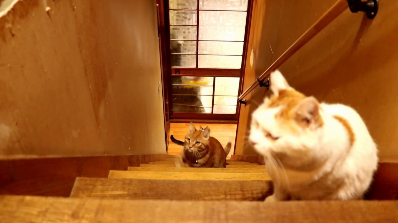 かご猫【上に何があるかニャ?】次々に階段をのぼって来る猫たち!