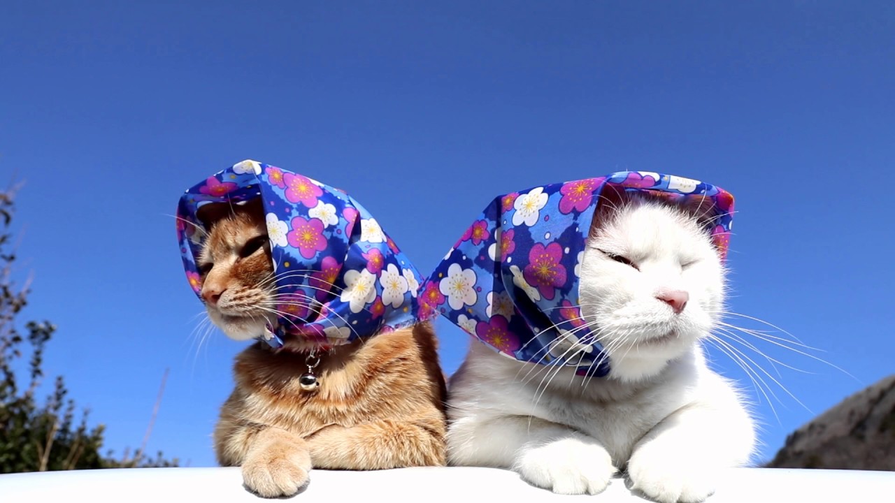 かご猫【農作業だニャ!】花柄のほっかむりをした猫!