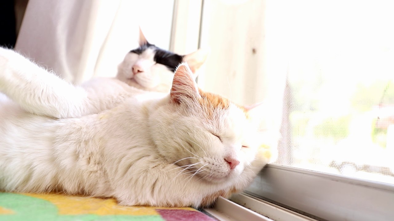 かご猫【心地良いニャ!】網戸にもたれて寝る猫!